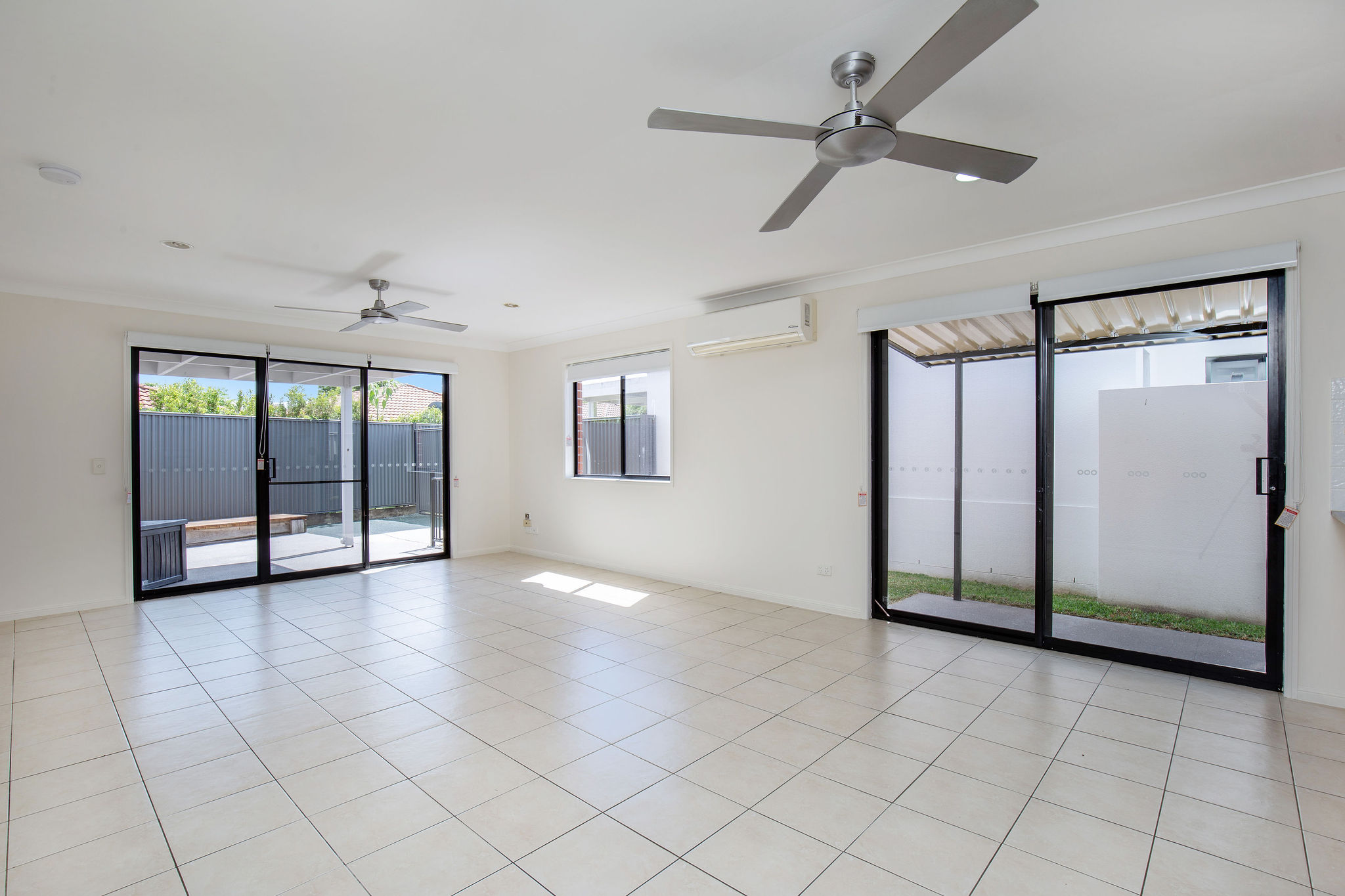 - Open plan kitchen dining and lounge with ceiling fans